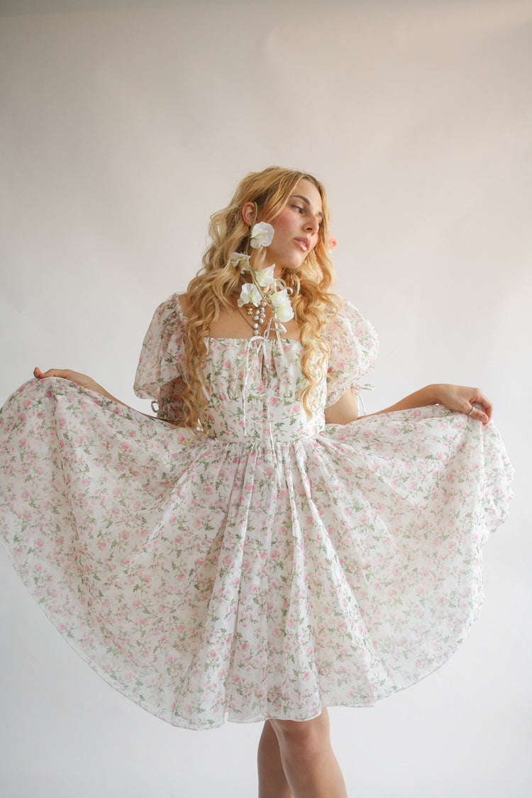 Aurora dress features the softest organza in the prettiest rosebud