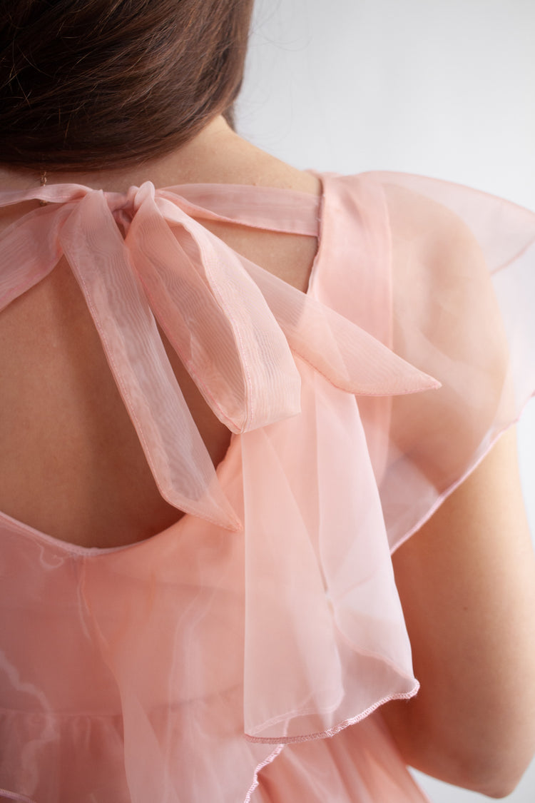 Delightfully frothy, and impossibly light, the Casanova features a subtle high-low hem perfect for frolicking through meadows. With a ruffle border that will have you twirling as soon as you put her on and a flounce detail that trims the low back and floats behind you like little wings when you walk-it truly is like wearing a fairytale.