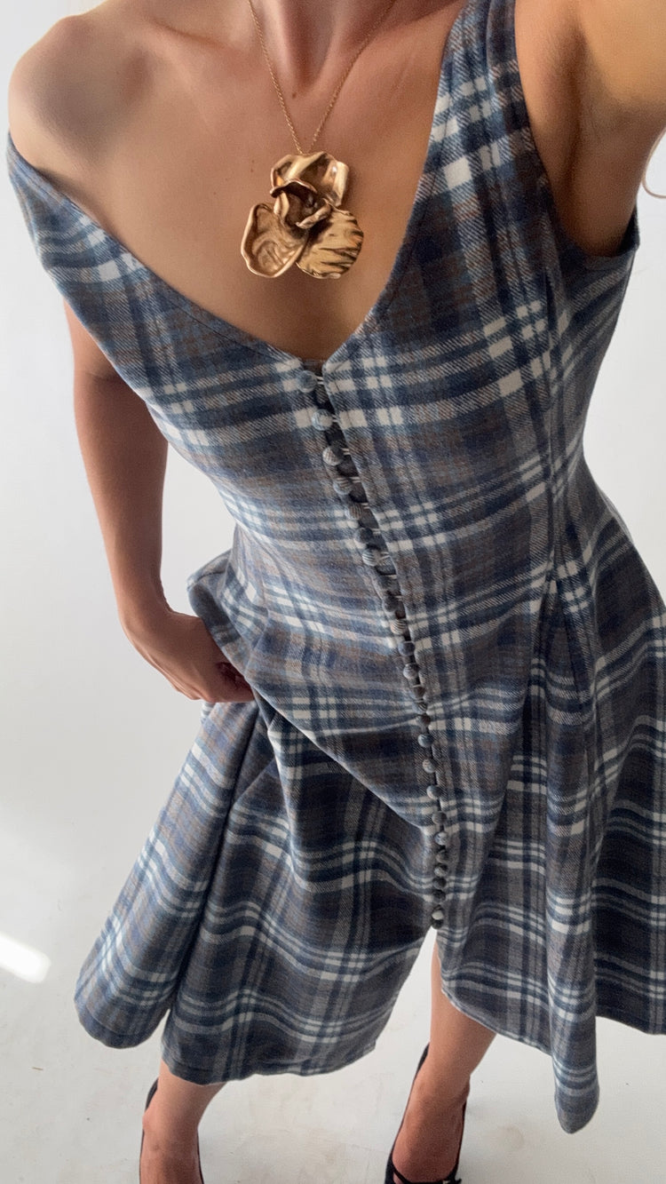 Le dos échancré et les boutons de haut en bas ajoutent une touche de romantisme à cette pièce traditionnelle.