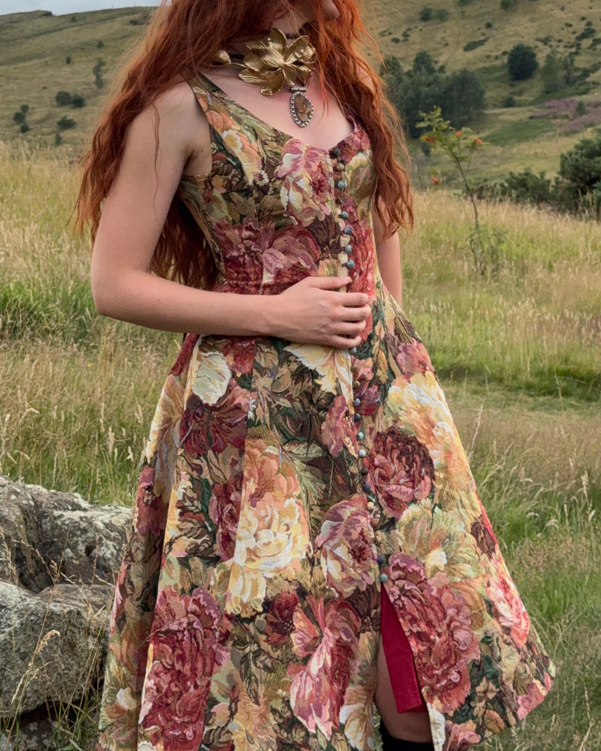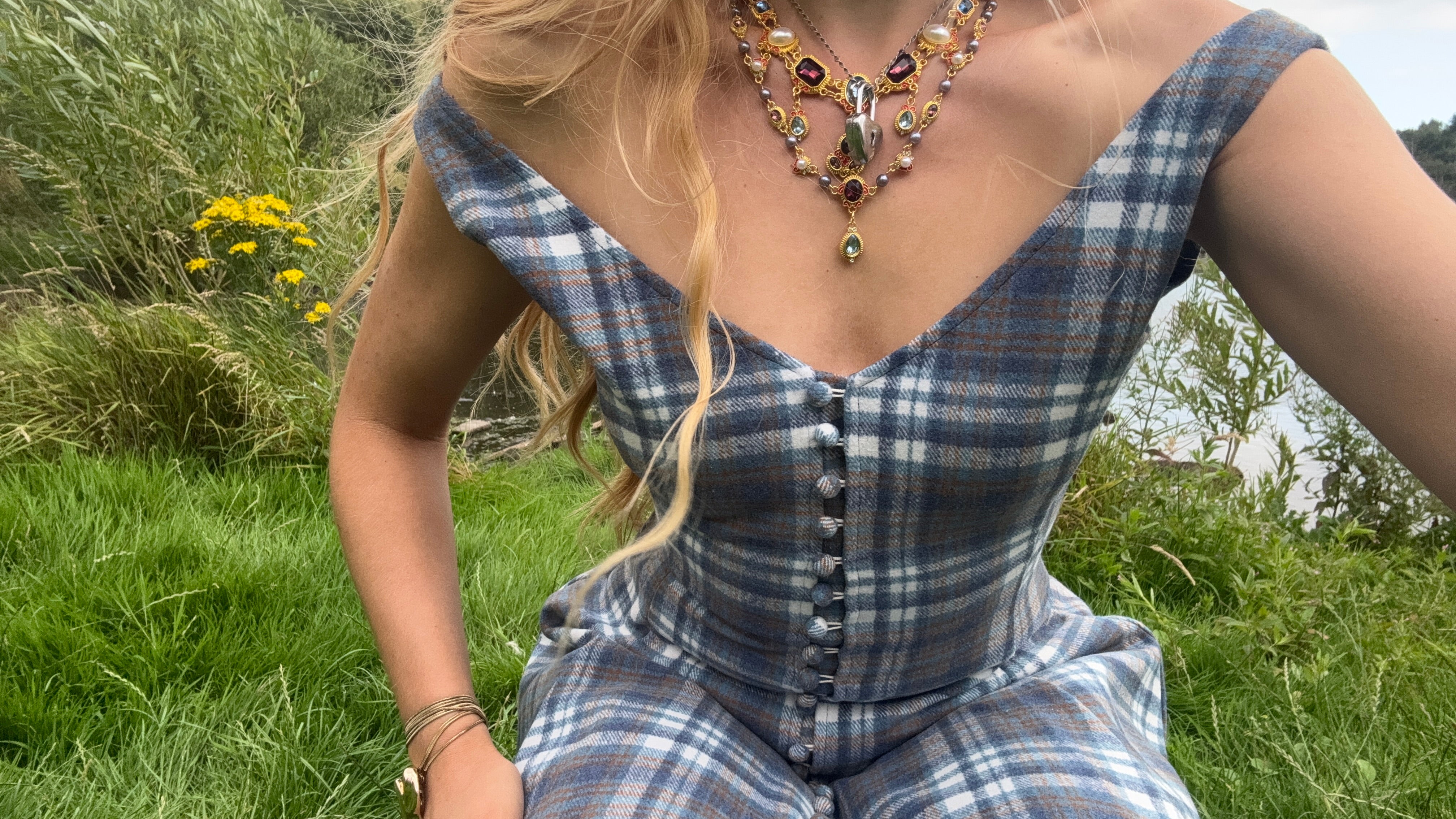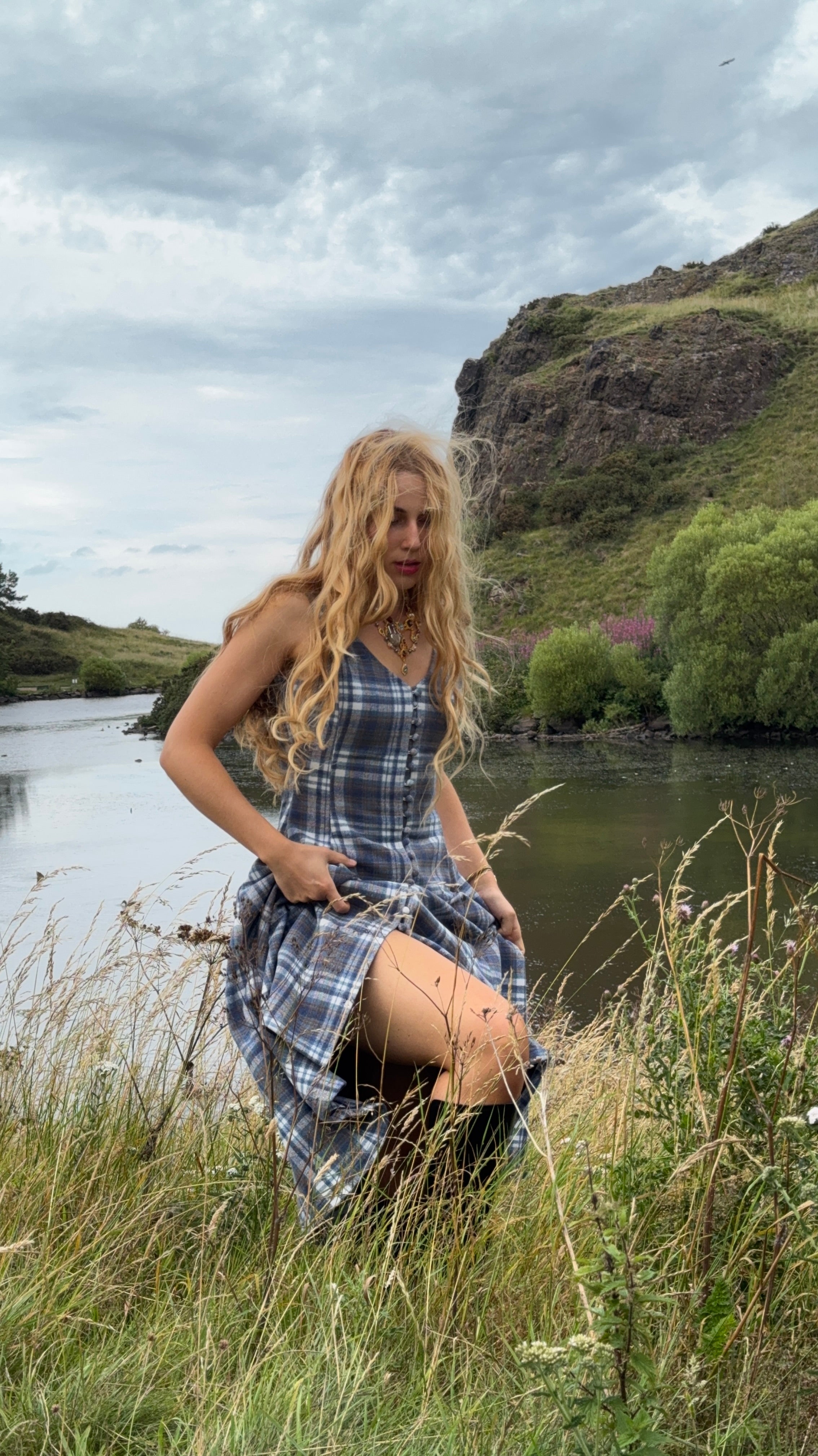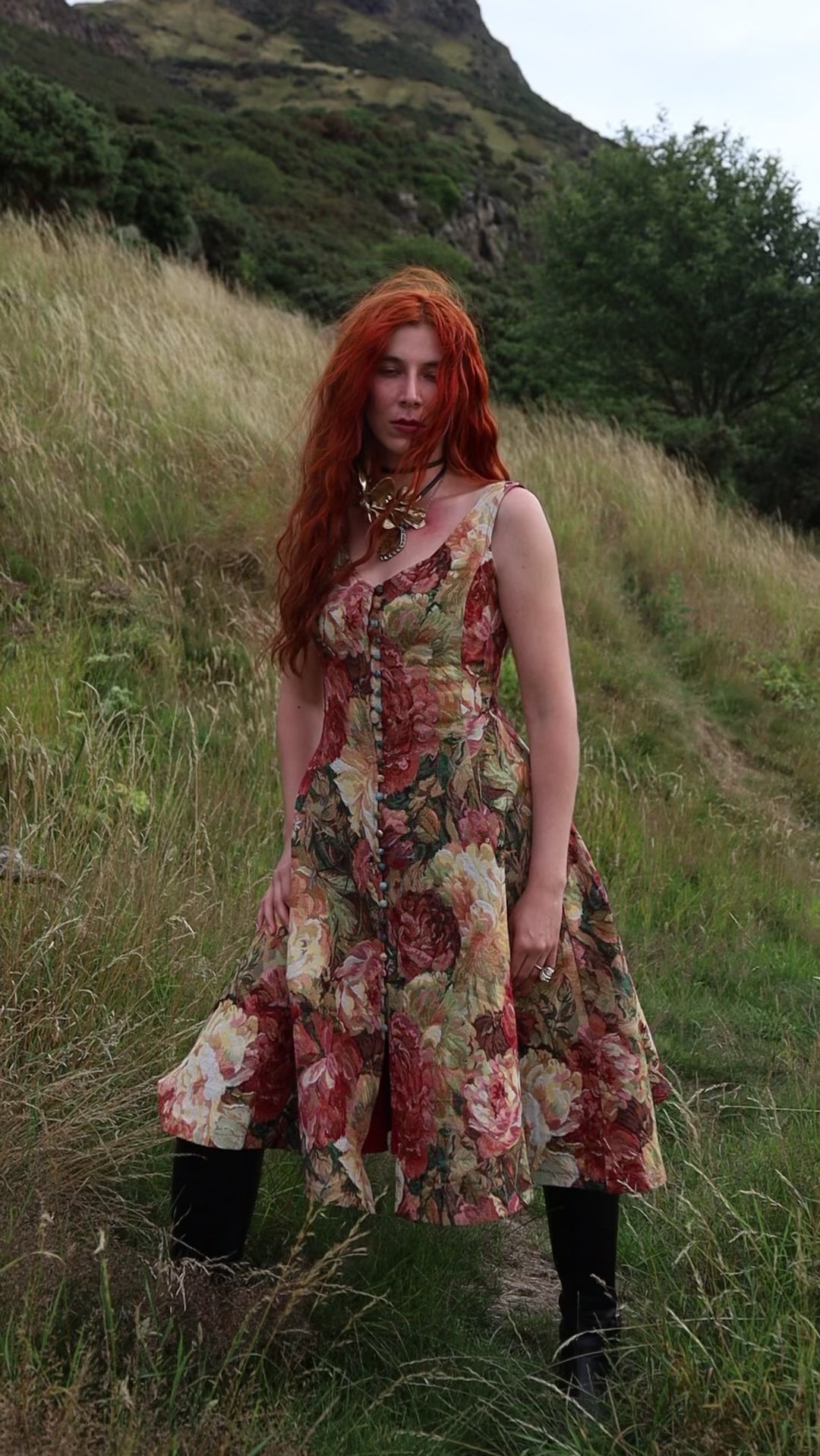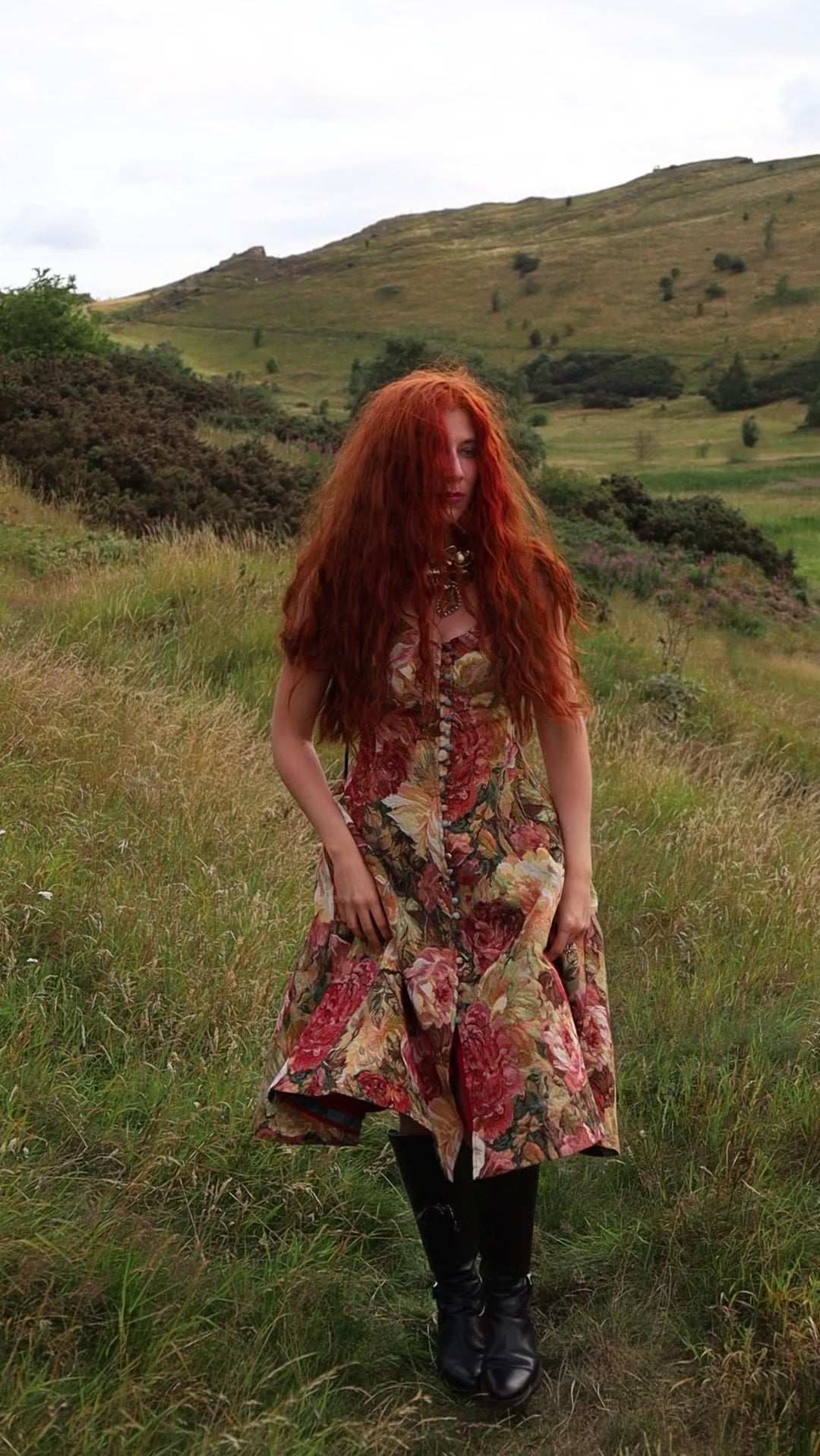 Inspired by the wild, desolate beauty of Scotland, this campaign was photographed in the Scottish Highlands. It is inspired by the silver-blue haze draped over the cliffside and the quiet blooming heartbeat of the landscape. Featuring plaid in wool blend, embroidered ember coloured florals, bestselling silhouettes now in black lace and more.