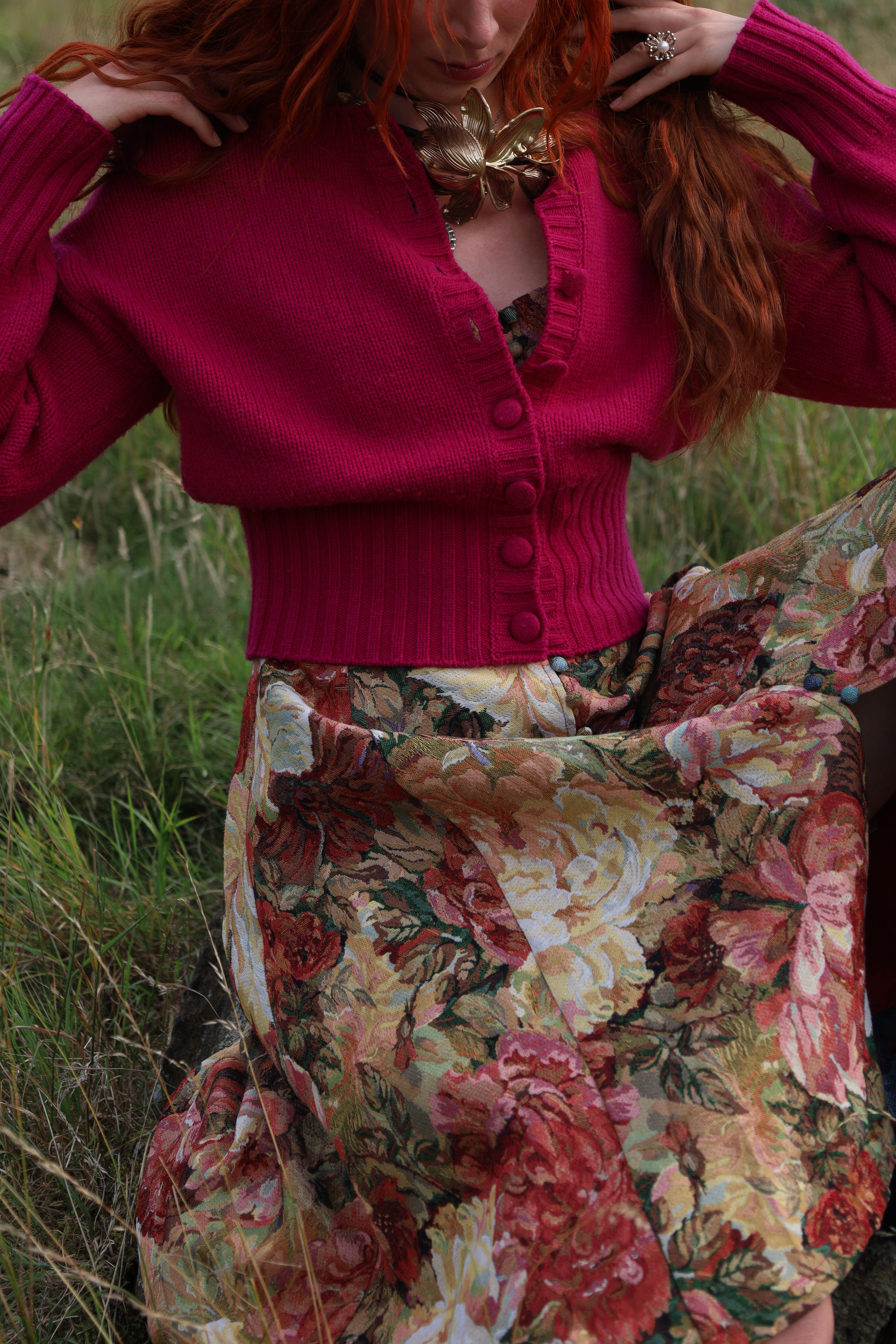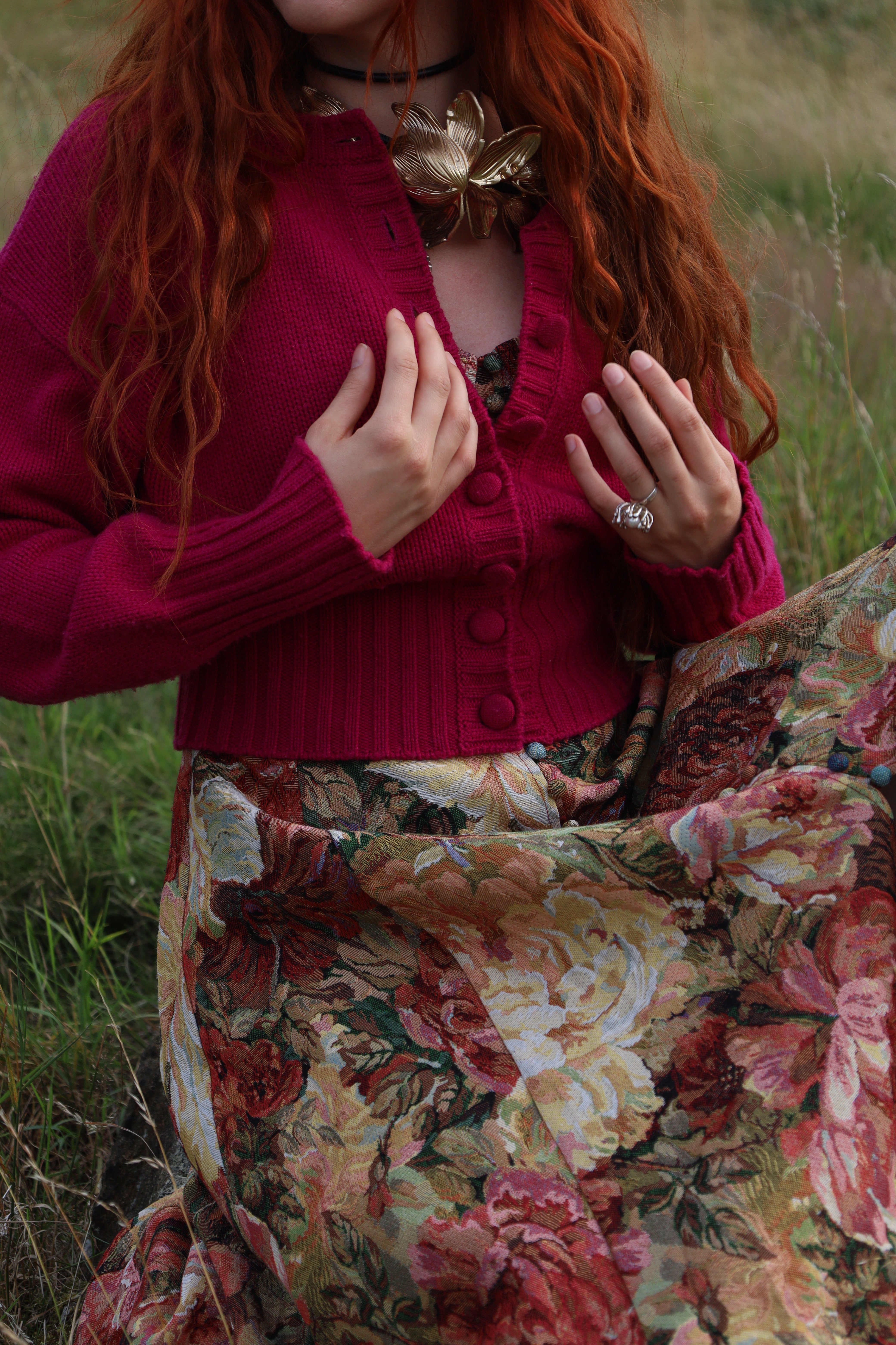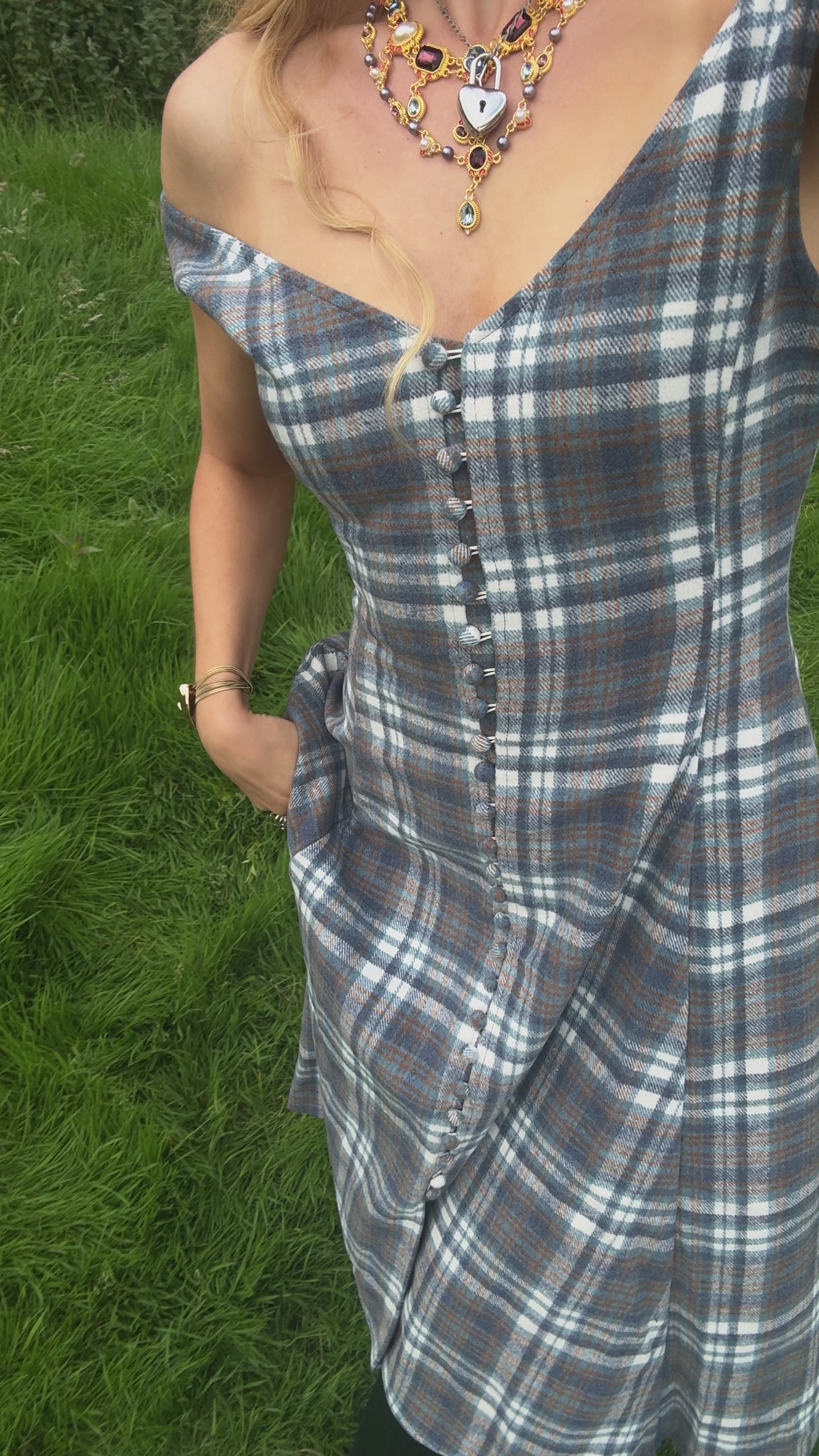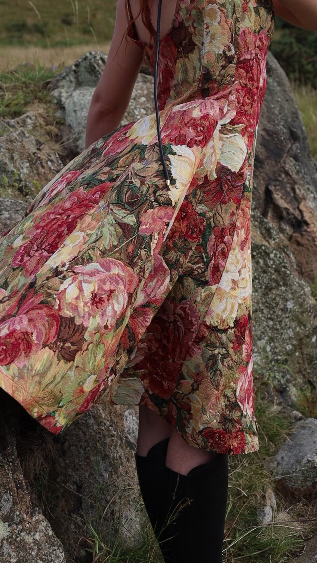 Inspired by the wild, desolate beauty of Scotland, this campaign was photographed in the Scottish Highlands. It is inspired by the silver-blue haze draped over the cliffside and the quiet blooming heartbeat of the landscape. Featuring plaid in wool blend, embroidered ember coloured florals, bestselling silhouettes now in black lace and more.